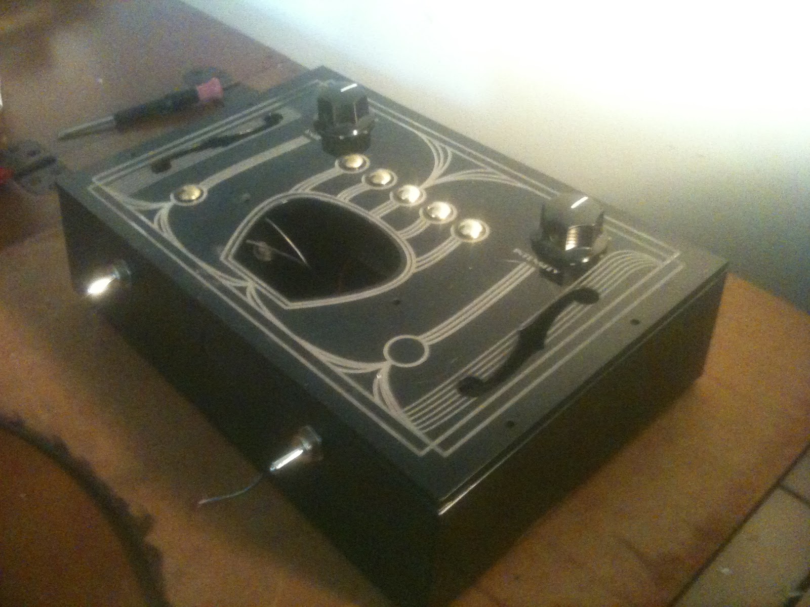 This was one of the first things I circuit bent around..9 years ago. Decided to make a nice enclosure for it and add a couple more features like LFO with RATE and INTENSITY controls.